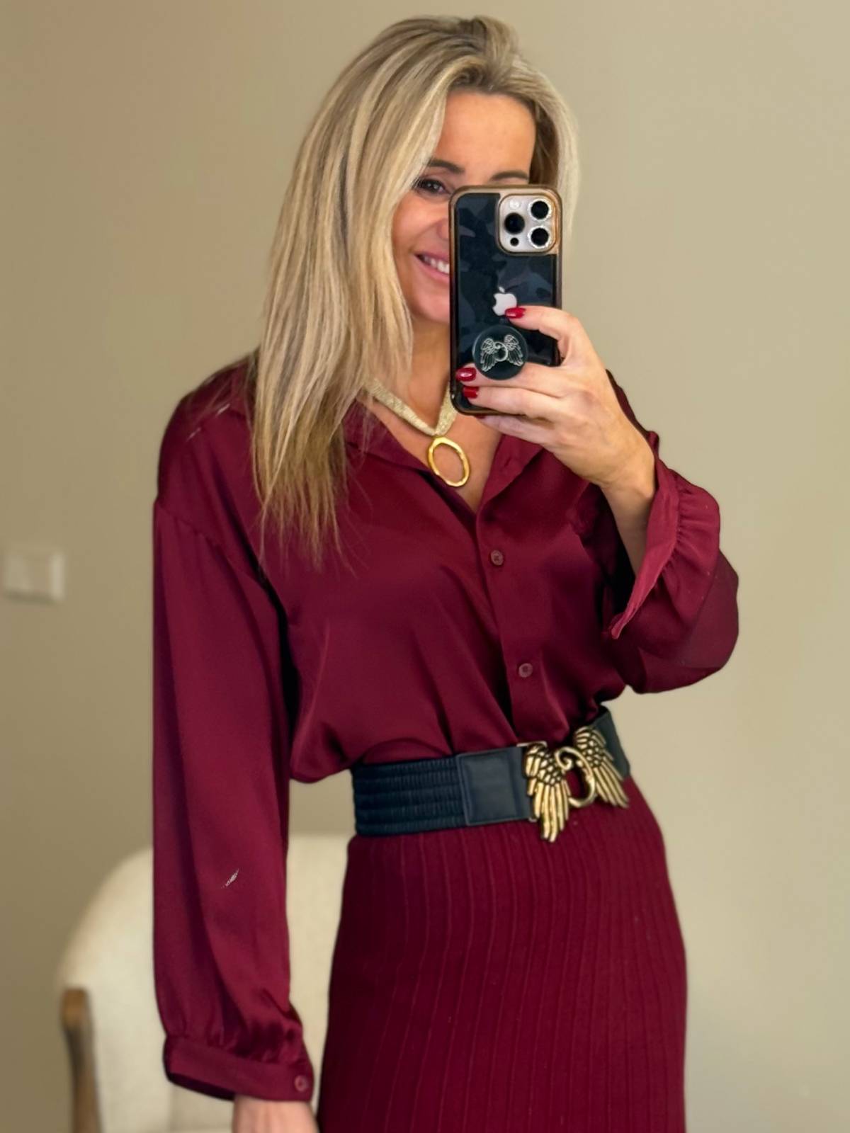 Caisa satinada abotonada en la parte delantera. Composición: 60% poliéster, 40% rayon.