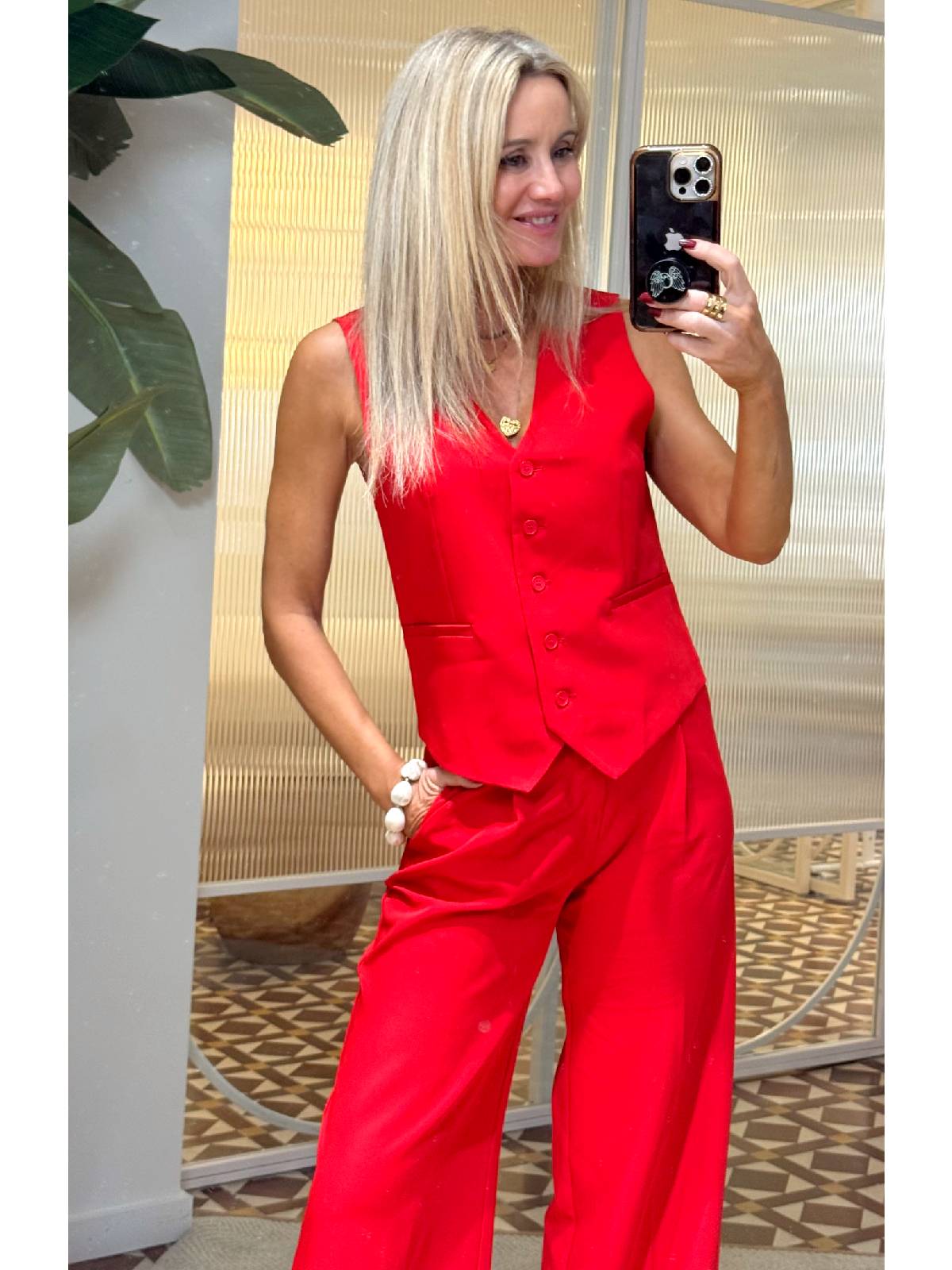 Chaleco con escote en pico y abotonado en la parte delantera con detalle de falsos bolsillos delanteros. Composición: 96% poliéster, 4% elastán.