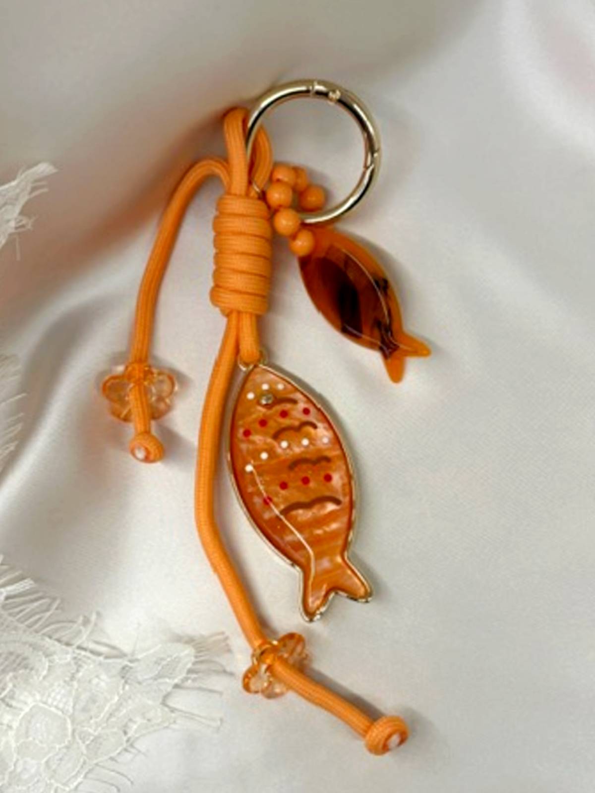 Llavero peces acrílico con cuerda naranja.