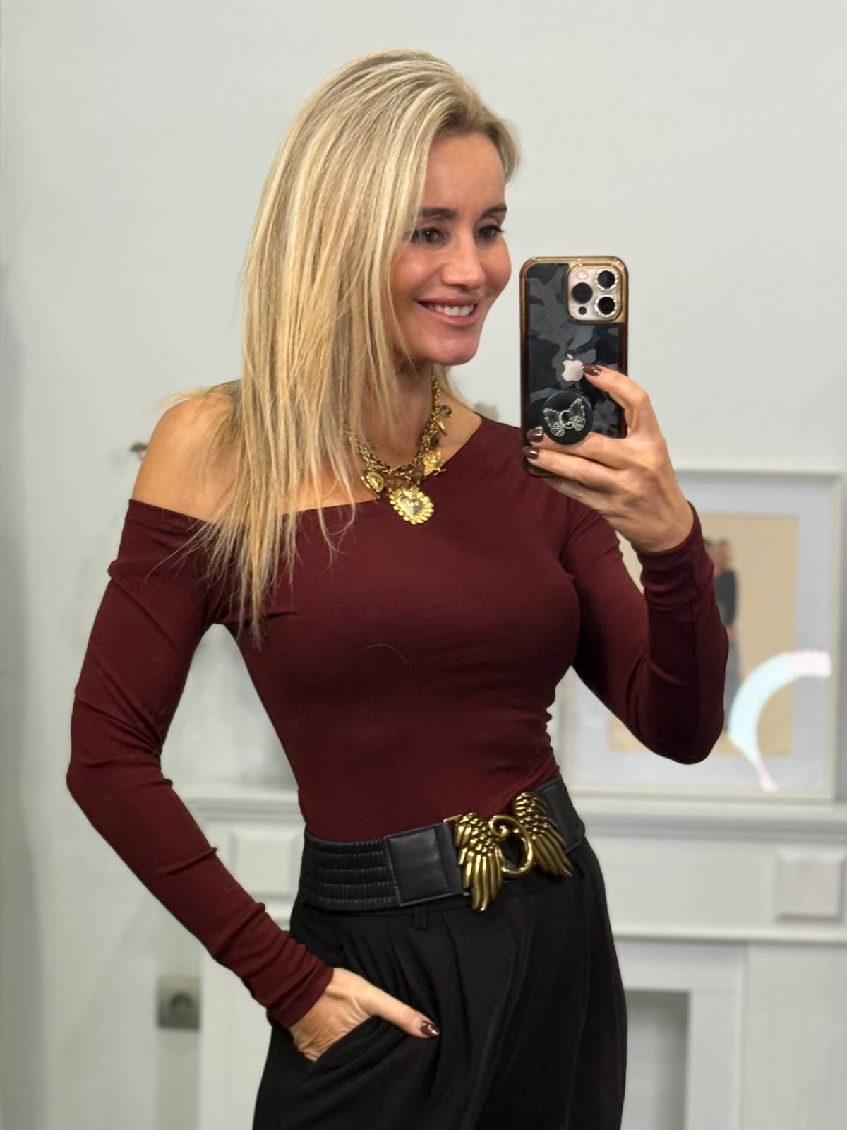 Top de algodón con manga asimétrica, larga, ajustado. Composición: 90% Algodón, 10% Elastano.